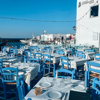 Naoussa - The traditional fishing village of the island, settled right on the water, which has now been overtaken by modern shops and restaurants. Our taxi driver, who grew up in Naoussa, said most locals have moved out into the “suburbs” since it’s been overtaken with trendy spots to eat and hang out. Everything here seemed a bit more expensive than Parikia and was definitely more crowded, but it’s a must visit (or stay) for sure. The shops and restaurants are literally directly on the water and everything we ate here was incredible!